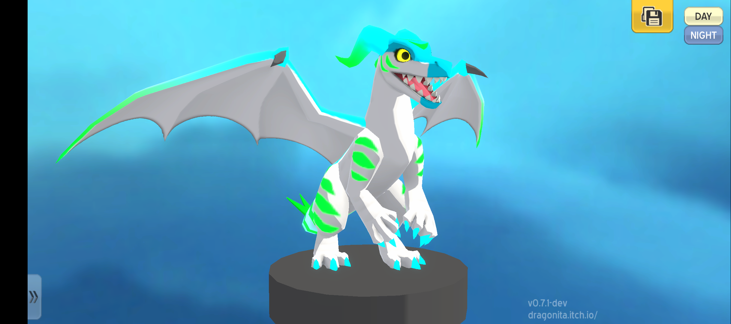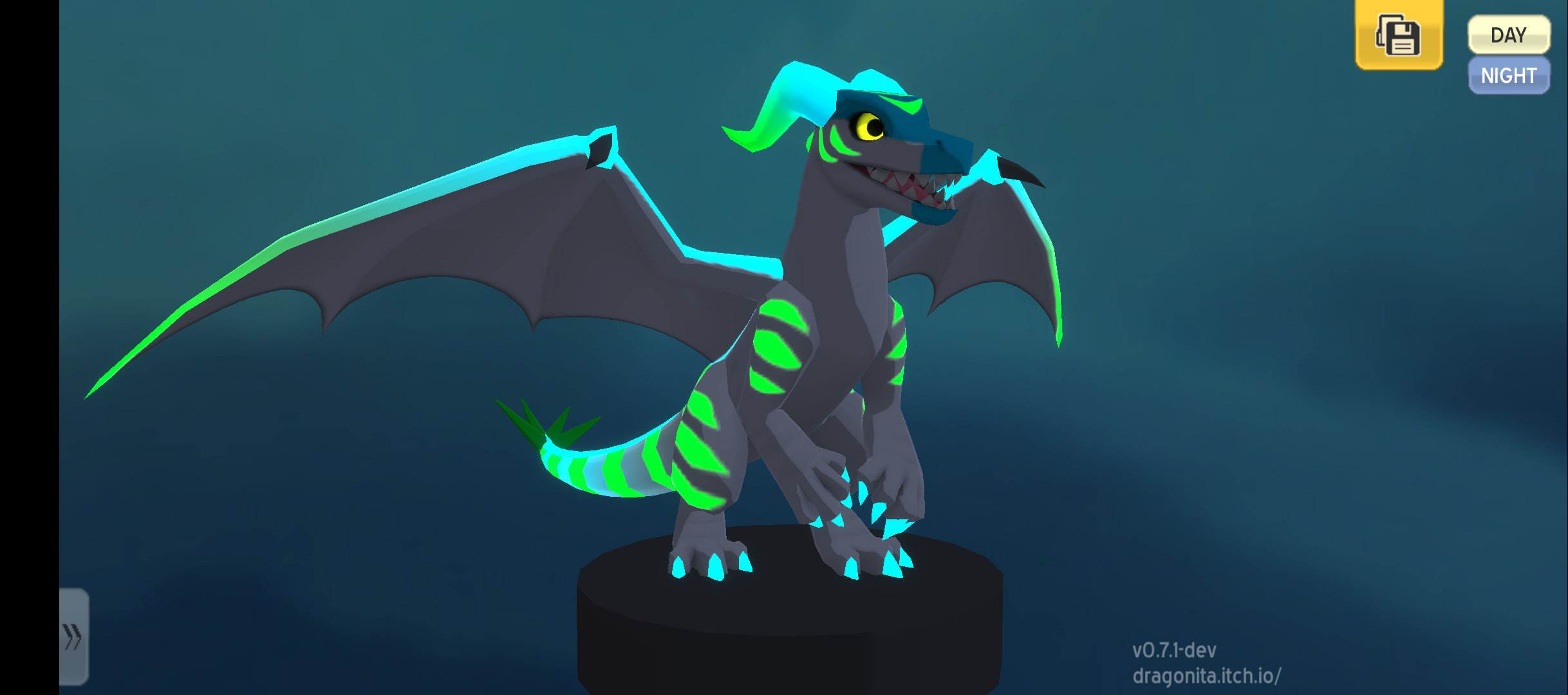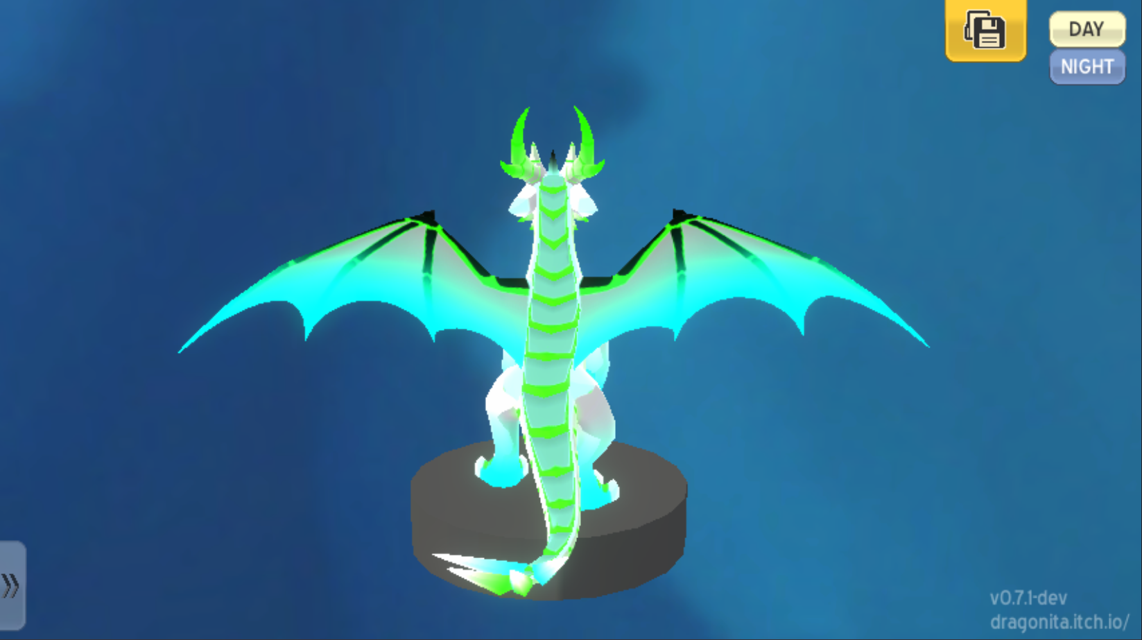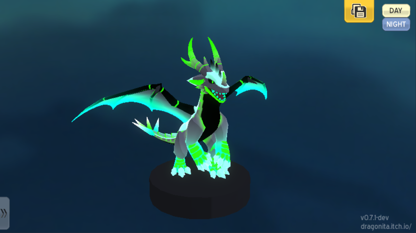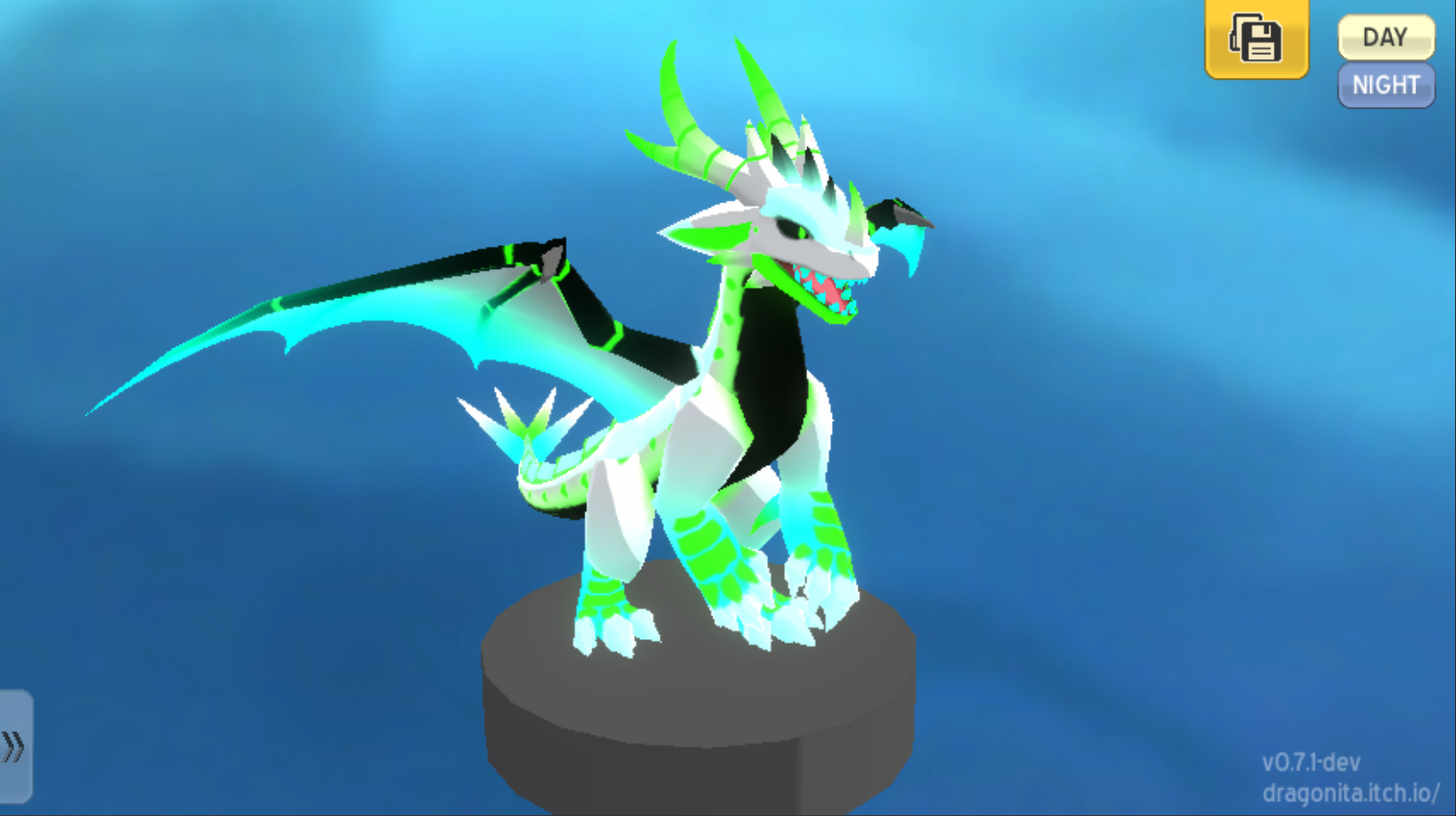Design your own dragon, with many parts, patterns, colors, and glows