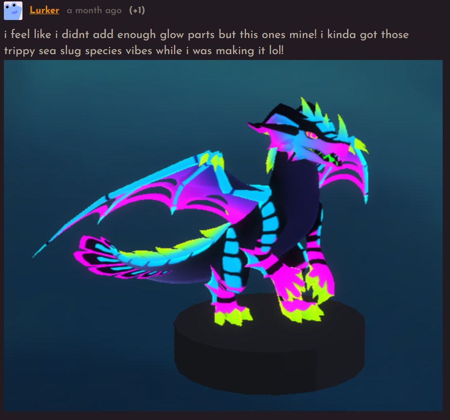 i feel like i didnt add enough glow parts but this ones mine! i kinda got those trippy sea slug species vibes while i was making it lol!